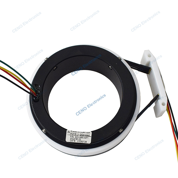 SCN065-04P1 is CENO separate slip ring with 4 circuits electric power and optional for different require. A separate slip ring is a slip ring device in which the rotor and stator can be physically separated. When the work is completed or maintenance is required, the two can be easily separated. Its rotor and stator are not permanently fixed together, but like a "plug" and "socket", they can be connected and disconnected at any time as needed. For more information about how CENO slip ring can fit your application please contact us.